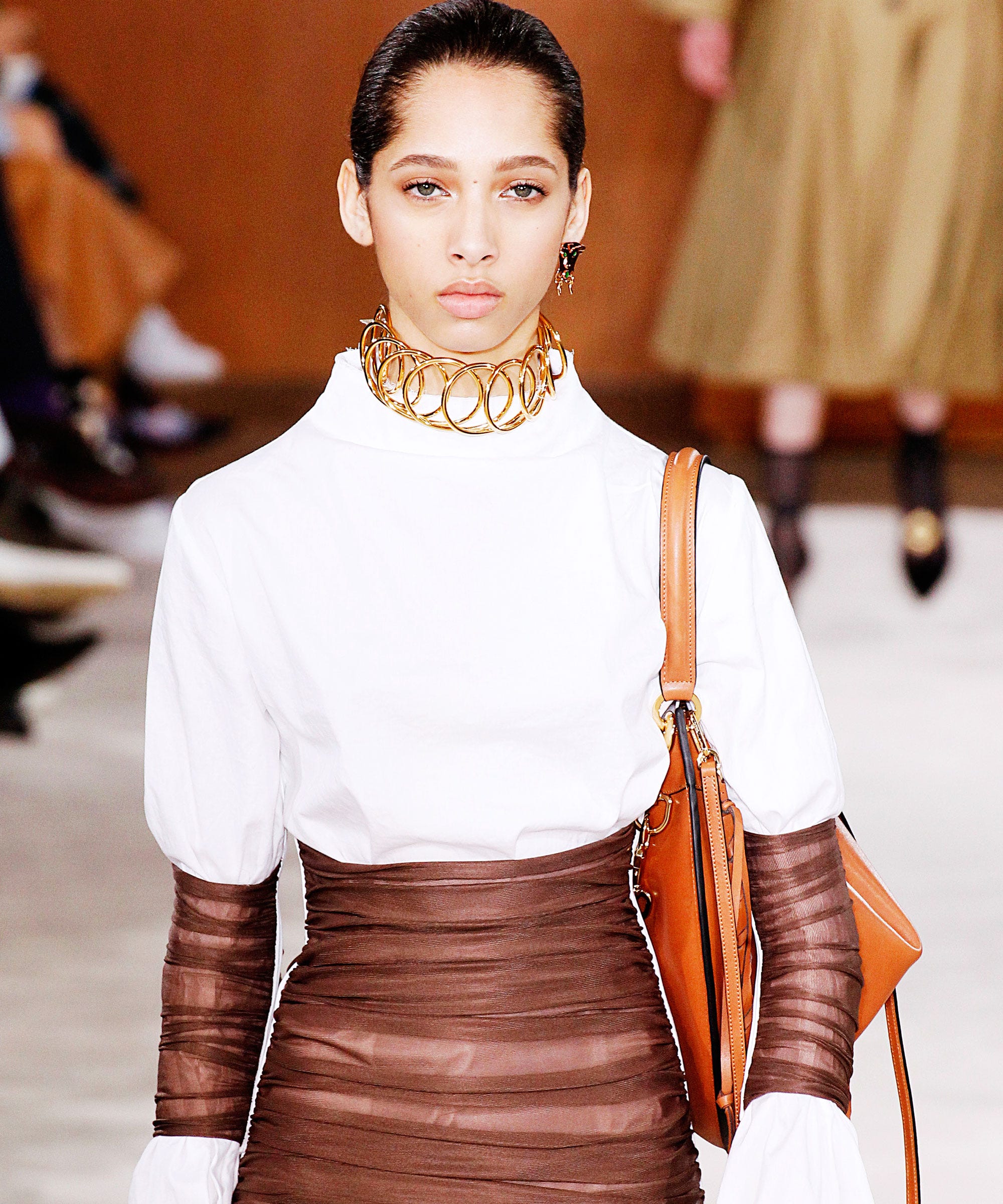 Shirts and sleeves definitely became a focal point for experimentation this season, and there was one thing in particular that we had never seen before: tight elbow wraps in a contrasting color, fabric, or print that closely resemble the shape of a bandeau.